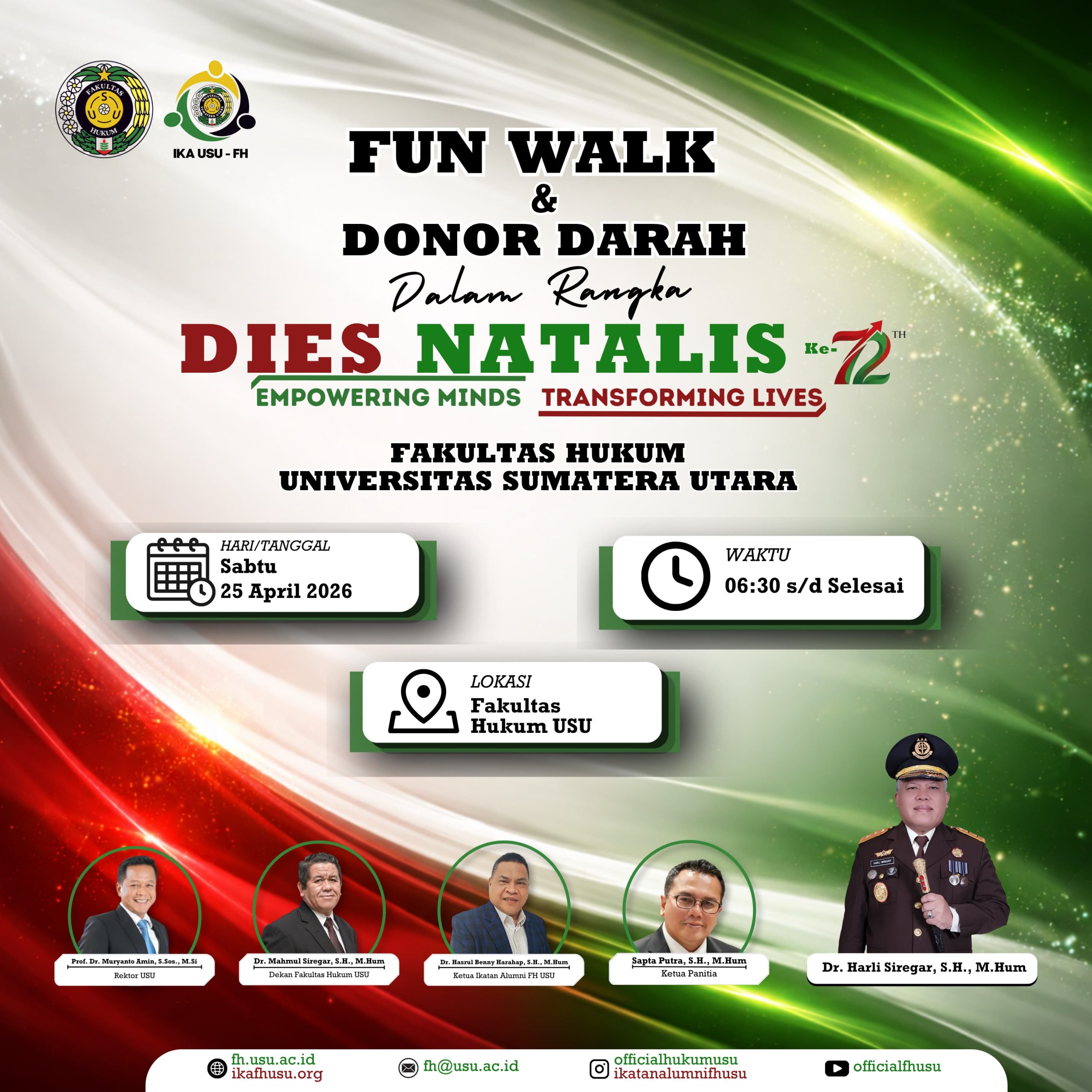 Selamat datang di website resmi Alumni Fakultas Hukum Universitas Sumatera Utara sebagai sarana berbagi informasi, membangun silaturahmi dan sinergi antara pengurus IKA FH USU periode 2022-2026 kepada segenap alumni FH USU di manapun berada.